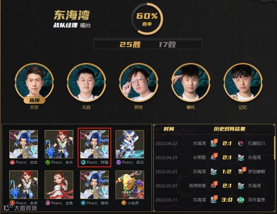 在2022年举办的武神坛巅峰联赛S4赛季的常规赛中,东海湾依靠出色的赛事节奏运营,以2:0的比分击败了有“双冠王”之称的雷霆万钧,进入胜者组的他们一路披荆斩棘,接连击败花好月圆、再续前缘两支战队,以三连胜的姿态进入决赛舞台。