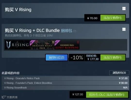 种种迹象,似乎都表明《吸血鬼:崛起》正在复刻去年《英灵神殿》的成功案例。可近来《吸血鬼:崛起》的两个付费DLC,还是引起了部分玩家的注意。名为“创始人礼包:最古老的血统”和“德古拉的遗物包”,合计127元比70元的本体还贵。