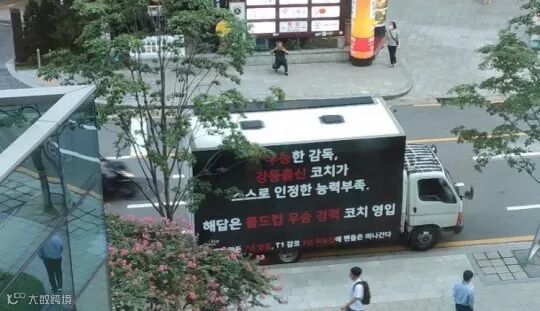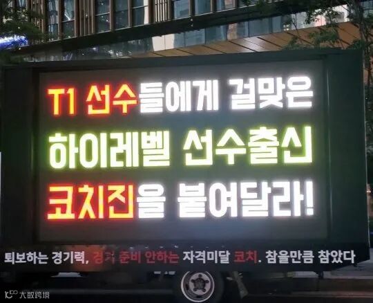 这几天如果你在首尔,很难不注意到一辆拖着电子显示屏的中型卡车。当然,这上面的内容不是哪个商场的大促活动,而是T1粉丝雇来的“流动横幅”,目的是给T1管理层施压。