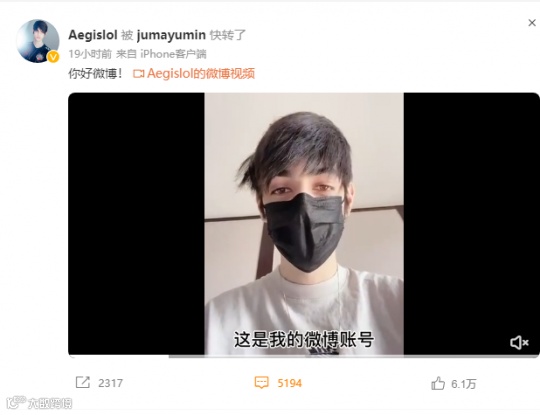 而紧接着Aegis发布的首条微博动态,也获得了188万次的播放量。