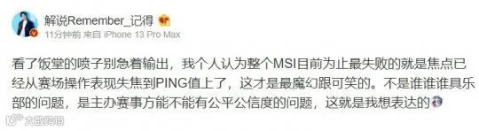 目前2022 MSI季中赛正在往奇怪的方向发展,LPL官方解说记得认为:“观众、选手开始纠结于ping值,而非竞技本身。”并质疑起了官方的“公平公信度”问题,这在任何一场国际赛事中,都是灾难性的事情。