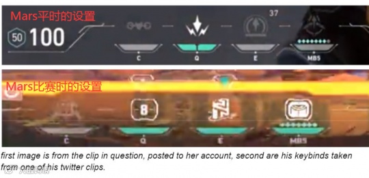这名网友指出,比赛过程中Mars的键位设置与原先并不一致。由于每个人习惯不一样,所以临时改变键位设置是几乎不可能的事。可对比Mars的男友Payen的键位设置,这跟比赛中“Mars”的键位设置却非常吻合。