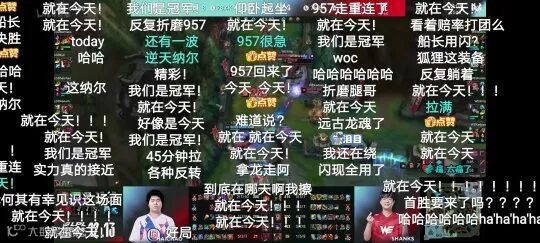 “就在今天”、“不在今天”这是WE的比赛中,出现最多的弹幕。