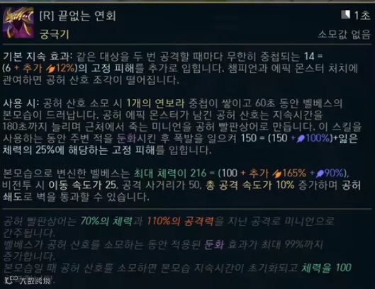 当然,造成这种现象的很大一部分原因,还是因为设计师把英雄技能设计地太过复杂了,远不是用“伤害”、“控制”、“AOE”就能概括的。破败王的夺舍、格温的力场,都需要用大段文字来描述。才上线的卑尔维斯大招,直看得人头晕眼花。
