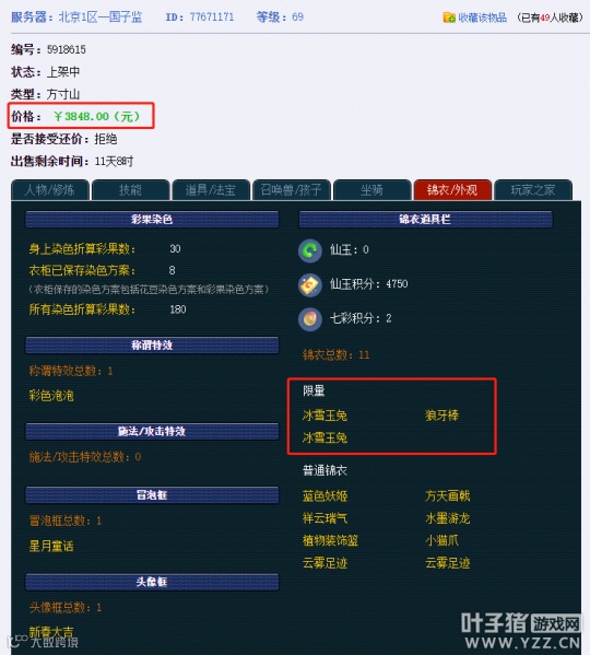 如果是九尾冰狐、浪淘沙的组合,其售价则会略低一点。