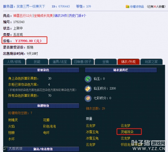 颇受欢迎的“灵喵耳朵”算是一个增值挂件,喜欢这个锦衣的小伙伴通常会选择拥有多款限量锦衣的角色,锦衣量少的角色并没有凸显这个“挂件”的价值。举个例子,有青花瓷没“灵喵耳朵”的角色是要比有青花瓷和“灵喵耳朵”的角色便宜2-3W的。