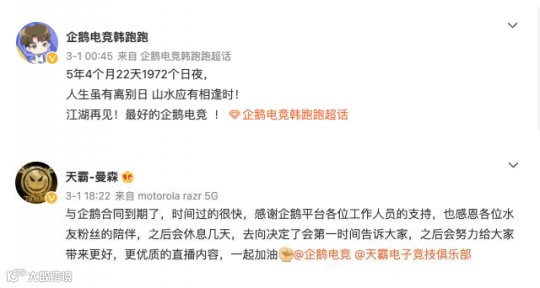 企鹅电竞的退市,其实是可以预见的。早在上个月,企鹅电竞的许多主播就在向外界宣布,因合同到期将不会再与平台续约。最近两年,德云色、沫子等不同版块的头部主播,都相继加入了其他平台,许多人都从中瞧出了端倪。