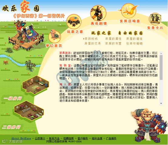 《梦幻西游》首部资料片——《欢乐家园》于2004年7月20日正式上线。此时正值游戏上线初期,玩家已不满足于在现有场景中冒险,而是想追求“家”的意义,《欢乐家园》就是这样一部应运而生的资料片。