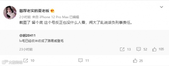 只是后续双方的正面开撕场景并未出现,爆料者始终没有回应Lvmao夫妇的微博喊话;甚至Lvmao本人也在微博发布后不久对其进行了删除。这是否是怕事情闹大,激起更多流言暂时还无法确定,可对“越20411”来说节奏已经带起来了。