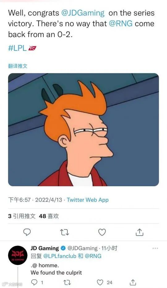 JDG官推发话:是Homme的锅
