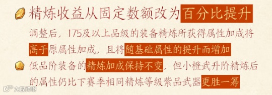 不过策划也对精8小橙武的玩家进行了回复,表示小橙武升阶精炼后的属性,依旧会比下赛季相同精炼等级紫品武器属性更胜一筹,不会被新赛季紫色武器超越,大家可以放心。