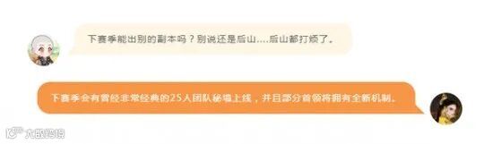 相信有不少玩家都非常期待出新副本,因为后山早已打腻了!官方直接给出了答案:新赛季将会有新的副本,并且是曾经非常经典,能够触动玩家们回忆的副本。