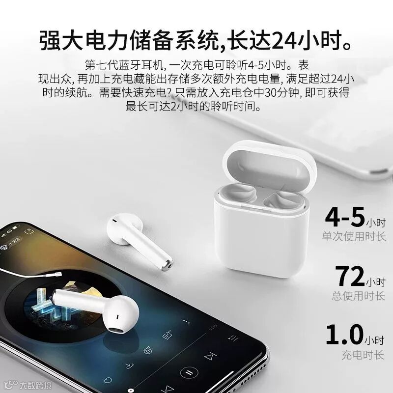 支持Qi 标准,对充电仓进行无线充电,配合充电仓内部无线充电,双耳机同时使用,单次使用时长达4-5小时,3天才需要充电1次。