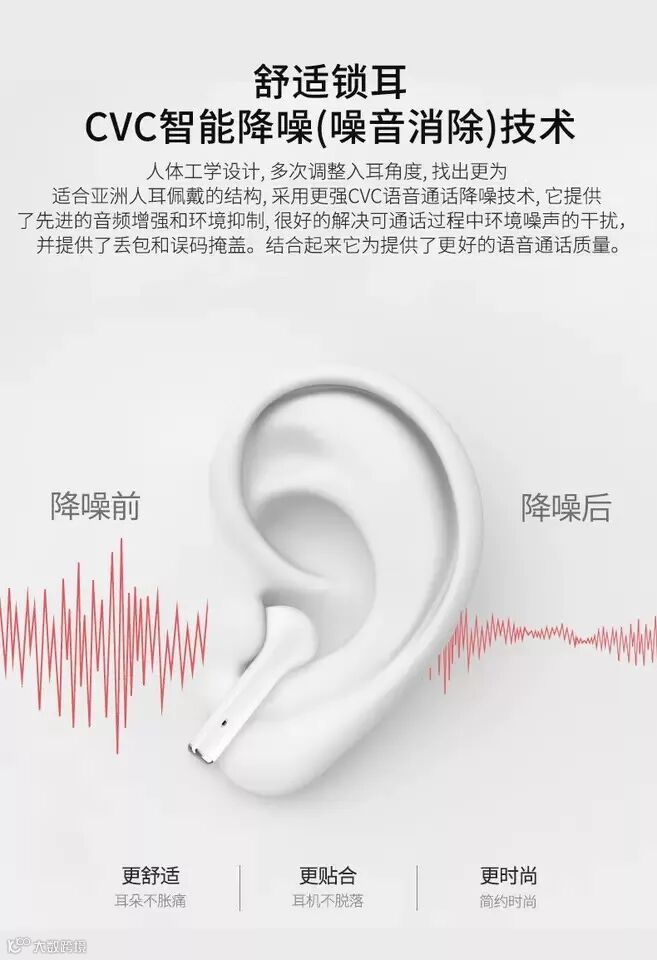 采用结合耳蜗式的入耳式+挂式的双重设计,佩戴舒适,狂甩不易掉,不胀痛,刚刚好。
