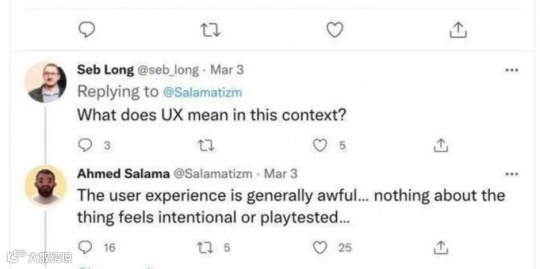 一位推特信息被认证为育碧 STH 用户体验总监的网友率先发推表示:“从《艾尔登法环》97分的M站均分来看,评论者对于游戏的用户体验一窍不通。”
