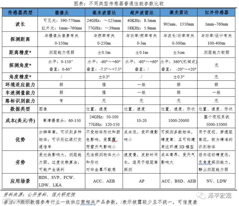3.1 传感器概况:分为四大类型,激光雷达综合性能最好