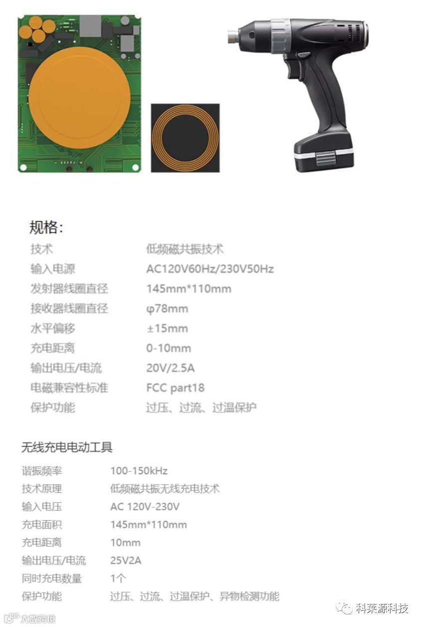 3. 无线充电动工具:功率为50W,隔空充电距离达 10mm。