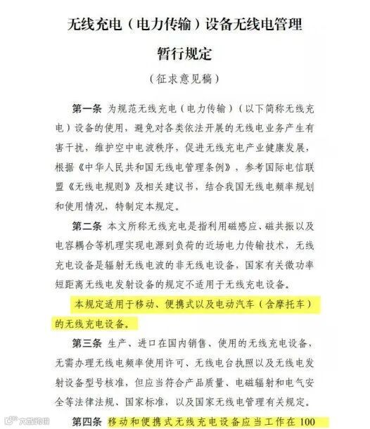 行业人士指出,此次工信部文出台征求意见稿,意味着无线充电技术使用的安全性在国内有了