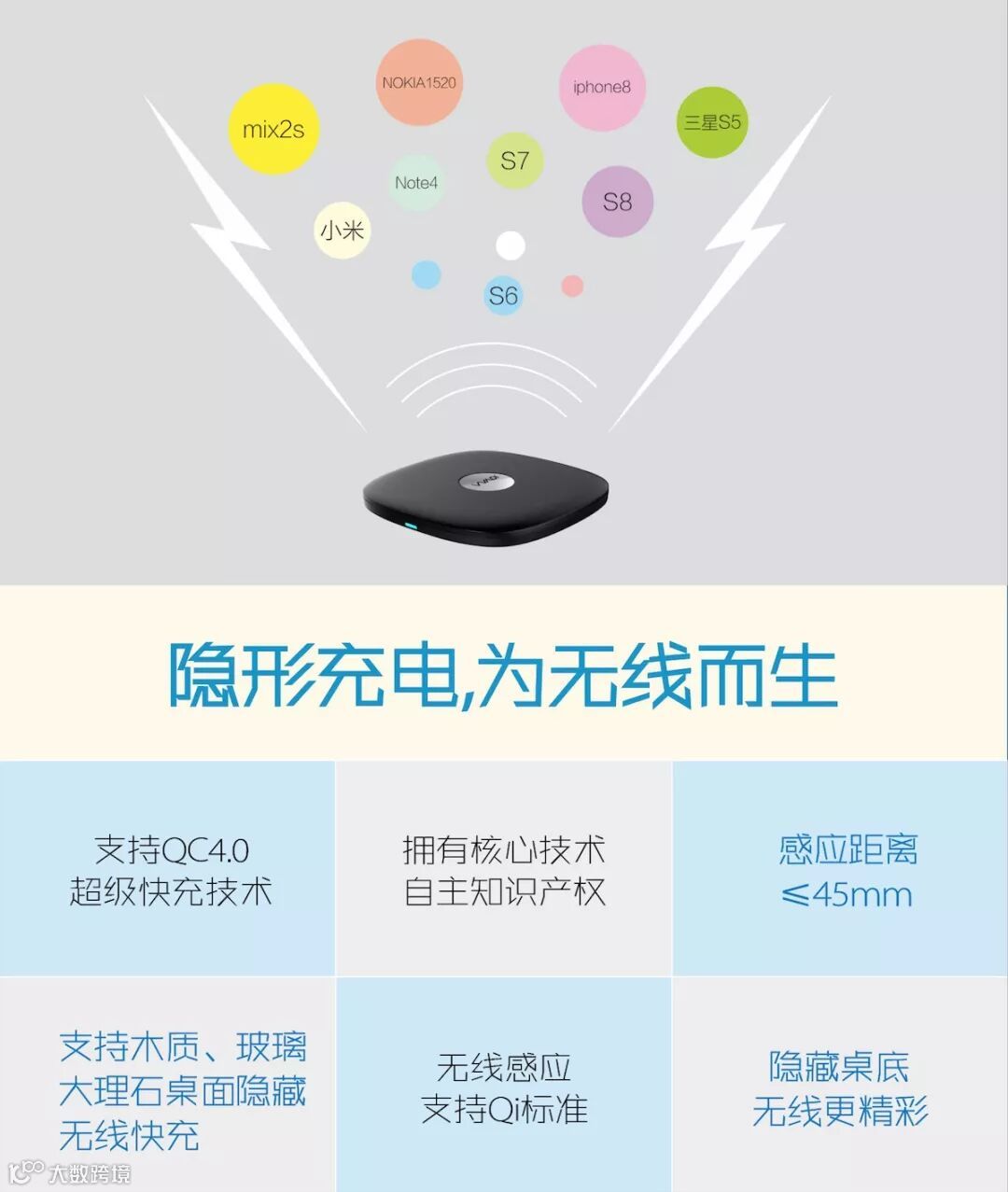 定期更新与持续发布新品。先后推出多款无线充电周边配套产品,自主研发推出隐形无线充电器,联合深圳实力知名工厂共同推出无线充电蓝牙音箱、无线充电加热恒温陶瓷杯、无线充电蓝牙耳机、无线充电台扇等产品。