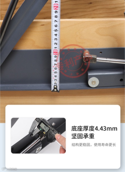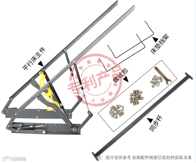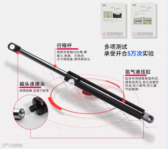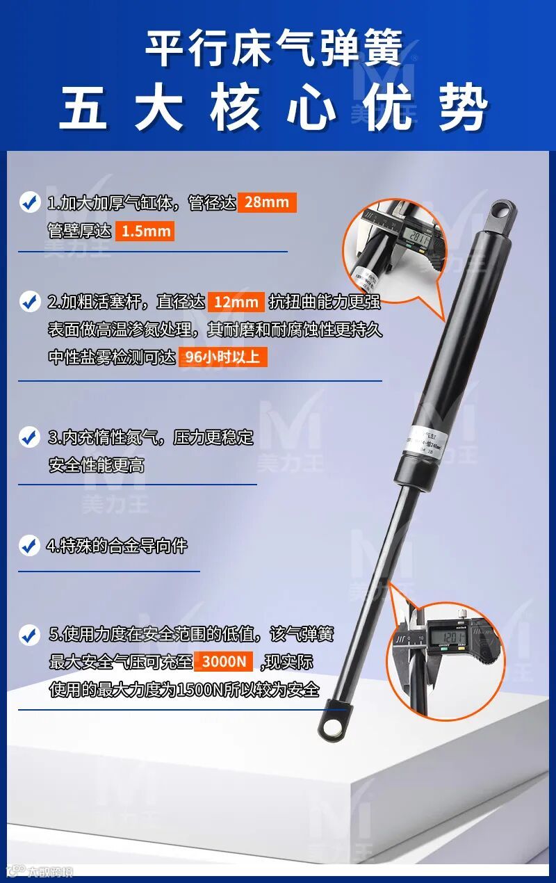 其材质是精选钢材制造而成,且采用了加厚加宽安装底座,承重高达200kg,有效防止长期承重导致变形;经过测试,这款平行床液压支撑开合可达5万次,其核心部件是气压杆,不管怎样打开都是非常顺畅且牢固。