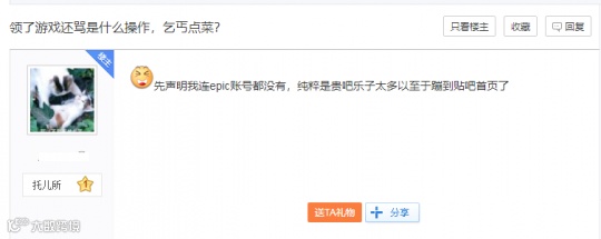 反对Epic的玩家认为官方酝酿这么久,最后送出的游戏却让人大失所望。