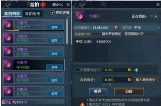 百炼令和寒光令都有过高光时刻,洗髓丹怎么会没有呢?一颗洗髓丹,这位玩家直接出价8508W。这些拍卖不得不说太逆天了。不过正如其他玩家猜测的,也有可能是这些人为了赚一些小钱,故意复制竞拍百炼洗髓。