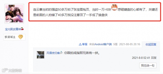 这种拍错还有人来接盘的现象可不在少数,这不,这位玩家更牛,顶了一手直接顶到五十多万,几乎是花了300RMB来当接盘侠。所以大家竞价的时候一定要小心,切莫心急!