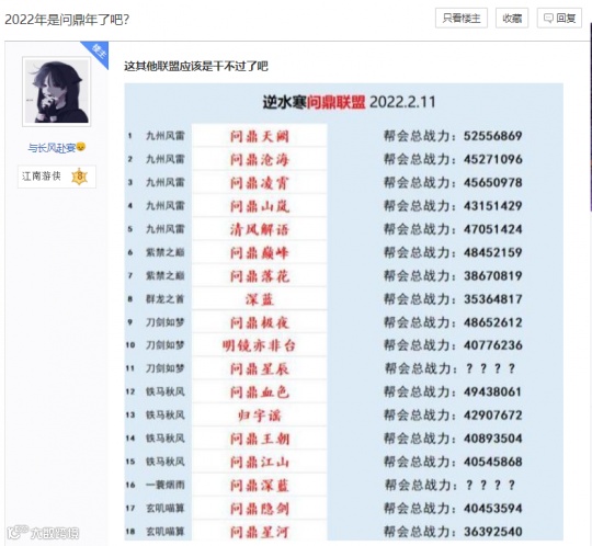 而问鼎联盟强大的实力也让很多玩家十分看好,许多人表示今年“天下第一帮”非问鼎莫属,各大赛事应该没有人能与问鼎碰一碰,戏称2022年是“问鼎年”、“问鼎寒”。
