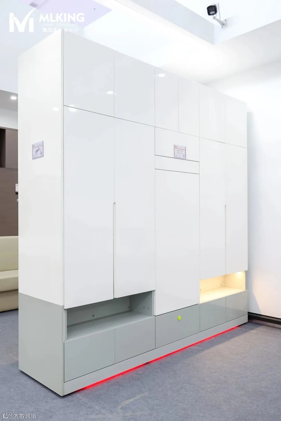 在本次展会中,美力王入围「金定奖」的两款重磅产品——隐藏式回旋门(插入门)配件、智能移动柜底盘系统重磅亮相。