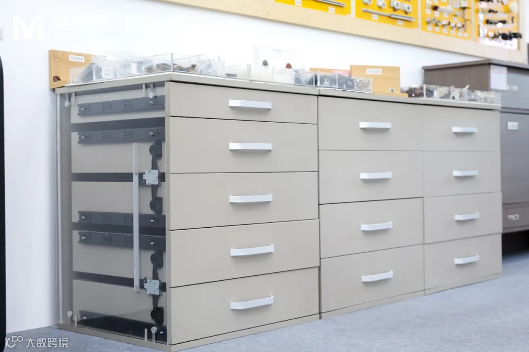 展会现场也展示了专门预防抽屉柜倾倒的“抽屉互锁配件”。该款产品能有效预防家里宝宝同时打开多个承重抽屉造成柜体倾倒砸伤的风险,广泛用于橱柜、电视柜、床头柜、收纳柜、文件柜、办公桌柜等场景,为消费者的居家安全保驾护航。