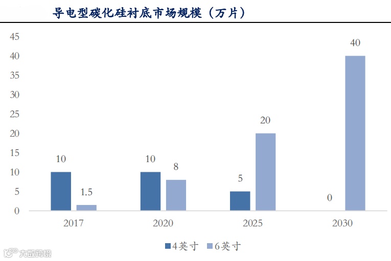 2025~2030年:4英寸晶圆逐渐退出市场,6英寸晶圆将增长至40万片。