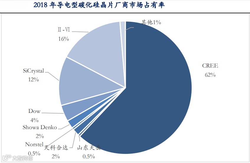 剩余份额大部分被日本和欧洲的其他碳化硅企业占据。