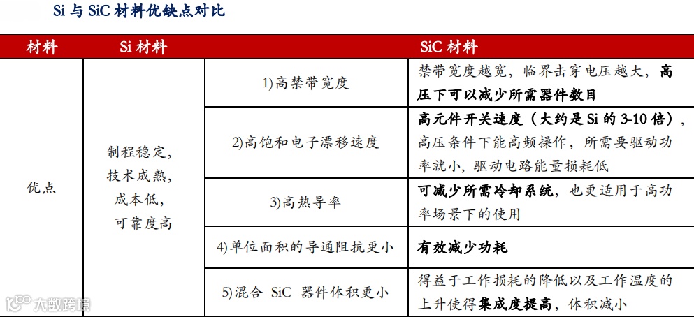 Si基器件在600V以上高电压以及高功率场合达到其性能的极限;为了提升在高压/高功率下器件的性能,第三代半导体材料SiC(宽禁带)应运而生;