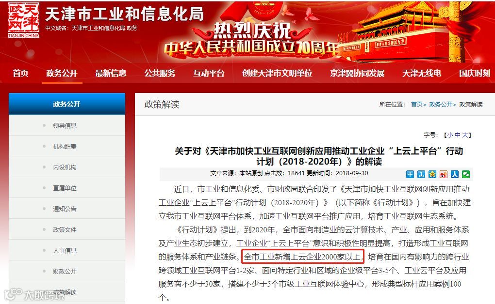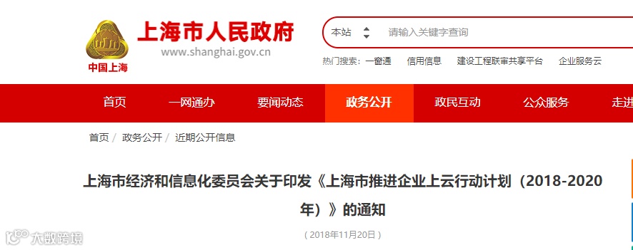 2018年国家工信部印发《推动企业上云实施指南(2018-2020年)》提出了企业上云的总目标:到2020年,力争全国新增上云企业100万家,形成典型标杆应用案例100个以上,形成一批有影响力、带动力的云平台和企业上云体验中心。
