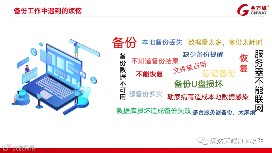 要选择可靠且安全的设备存储备份数据。一种比较流行的方法是将数据备份到云端。金万维备无忧云备份具有稳定性高、扩展方便等特点,能够提高数据安全备份的可靠性。