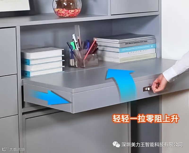 这款抽拉上升滑轨在使用时我们会发现它有很多的亮点,不管你是用于办公的书桌,还是餐台桌它都可以为你提供一桌多用场景。使用时轻轻一拉零阻上升形成平铺的台面,下推即可迅速隐藏于柜内,隐蔽美观,提高空间的利用率。