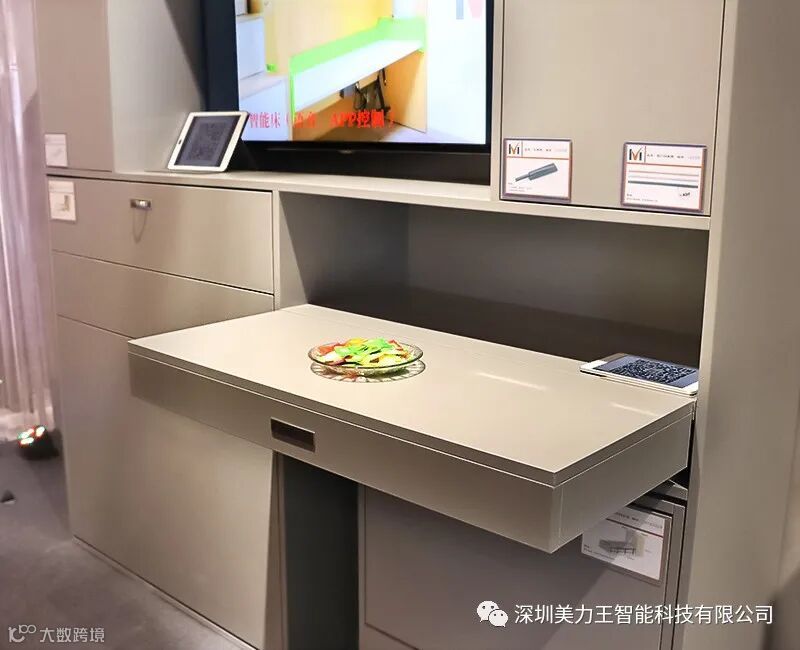 隐藏折叠在柜体内部仅占0.4平方米,不占用实地面积,当家里需要活动空间时,如小孩玩耍,这样也不怕磕碰到。