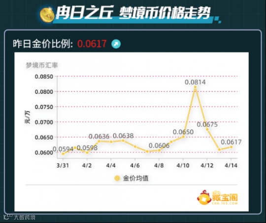 最让人没想到的是,这个藏宝阁还为《超激斗梦境》的搬砖党量身定做了梦境币价格走势的分析图,可以及时地帮助大家分析“出货”的最佳时机。