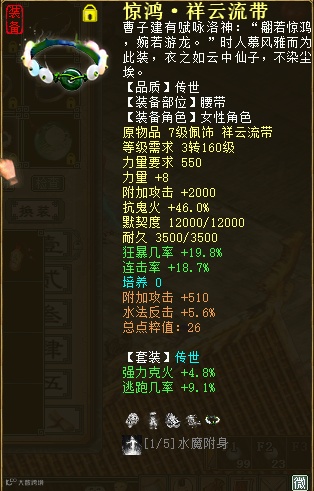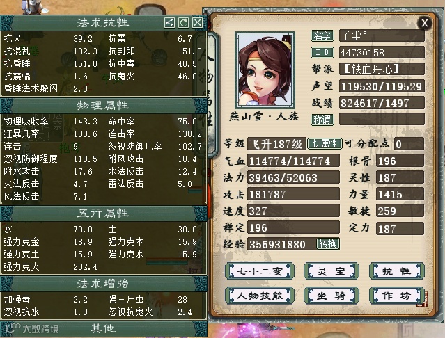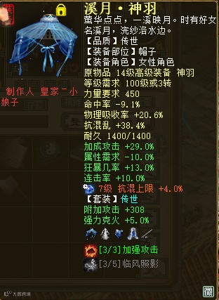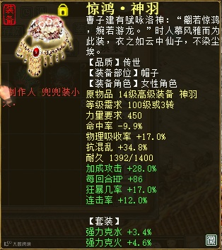 首先在装备方面,大力女人受制于现今的装备系统,无法与魔族和龙族相提并论,原因在于神兵和仙器系统并不支持大力女人这个玩法(尽管大力女人有大力天赋),说到这里鬼族小伙伴们可能会仰天长啸:我们有大力神兵,但是就是没有大力天赋...但这些设定也算是版本更迭的问题了,这里不多赘述。咱们先来看看他的日常全满属性。