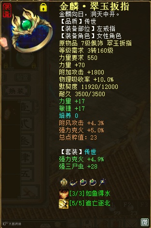 以上就是全套的日常任务装备,而了尘°并非只专注于日常任务,在PK上也有着一定的研究。可能有玩家说克火PK不行,但这并不妨碍克火玩家玩PK,不是吗?