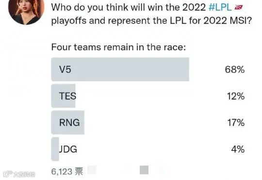 而在比赛开始前的外网投票中,绝大多数人都认为V5能获得冠军,不知道在看完这轮BO5之后,观众们的看法是否会发生改变。