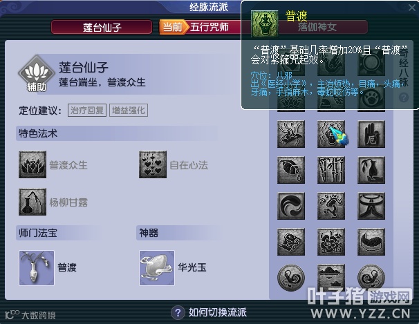 相对化生寺来说,普陀山的辅助点主要是功能性。普陀山的灵动九天技能可以很好地提高全队灵力,起到增伤提防的作用。除此之外,普陀山的五行颠倒也可以提供不错的法术躲避和吸收法术的作用。