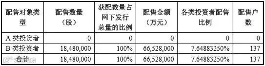 以此计算德众股份网下配售比例为7.65%,为网上中签率的11.79倍,高于常辅股份的网下配售比例。