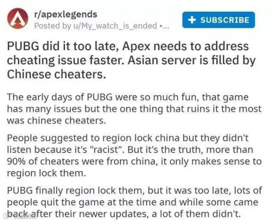 这件事后续引起了轩然大波,并导致了许多国外玩家在网上发帖,一些PUBG玩家也来此横插一脚,希望将中国玩家限制在自己的服务器中;甚至还想要通过完全封禁中国IP来达成目的。