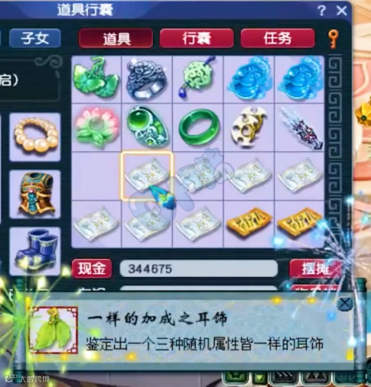 梧桐给另外一位玩家鉴定灵饰,第一个就出了一样加成的耳饰。其他装备都很拉胯,这个耳饰成了全村的希望。