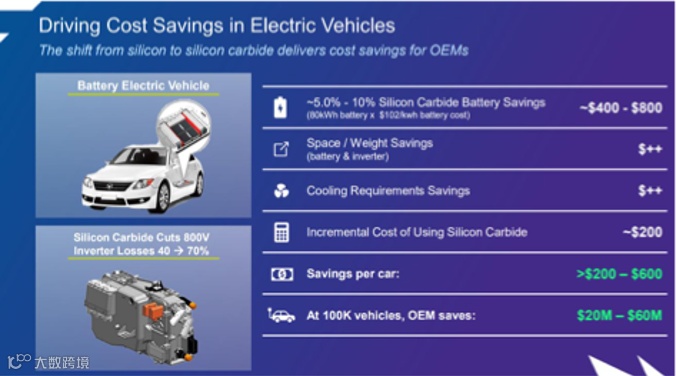 对于电动车来说,SiC意味着更高效的电能转换效率,更高的续航里程,更高的充电效率。