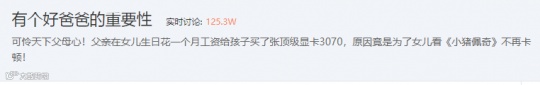 关于为什么会送给孩子这样一张显卡,老哥表示只要能让女儿以后看《小猪佩奇》时不再卡顿,钱不钱的都无所谓。更何况提出买3070的人也是女儿本人,自己没有理由不照做。