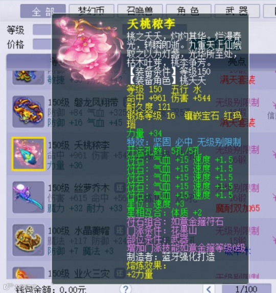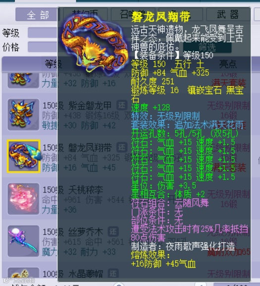 第五件是150级无级别满天花雨腰带,16锻黑宝石,熔炼后防御+100,气血+370。这条腰带也是比较常规,亮点在高级别无级别。以66.66w上架藏宝阁。
