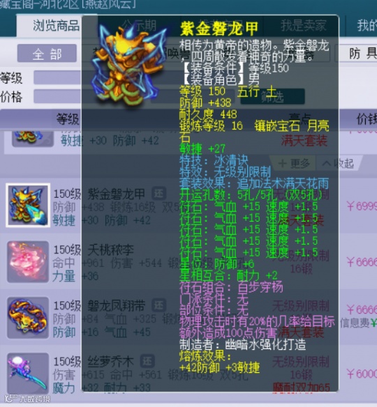 第三件是150级无级别满天花雨男衣,16锻月亮石,熔炼后力量+32,防御+454。这件男衣你说他普通,他也不普通。说他有多稀有,好像也不是特别稀有,摆了98w人民币。