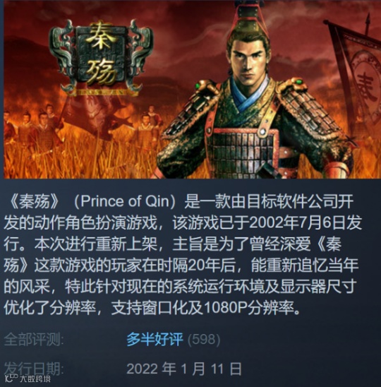 2022年年初,由目标软件开发的《秦殇》正式在Steam平台上发布。这款最初发布于20年前的动作扮演游戏,一下子就勾起了老玩家们的回忆。为了能够适配现代的电脑设备,官方进行了诸多优化和改动,3.6元的售价比盗版还要便宜。